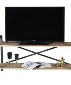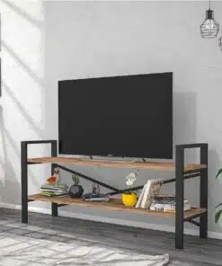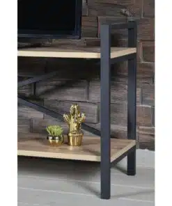 מזנון טלוויזיה מעוצב עם גוון עץ ופרזול
