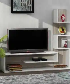 מחפשים מזנון טלוויזיה שיהפוך את הסלון שלכם לאטרקטיבי יותר? הגעתם למקום הנכון! המזנון המיוחד שלנו, המשלב בין לבן אלגנטי לחום עץ טבעי, ייקח את עיצוב הסלון שלכם לשלב הבא.