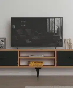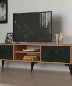 שדרגו את חלל הסלון שלכם עם מזנון טלוויזיה בעיצוב קלאסי ומרשים, המשלב גוון עץ אורן אטלנטי חמים עם נגיעות שחורות אלגנטיות.