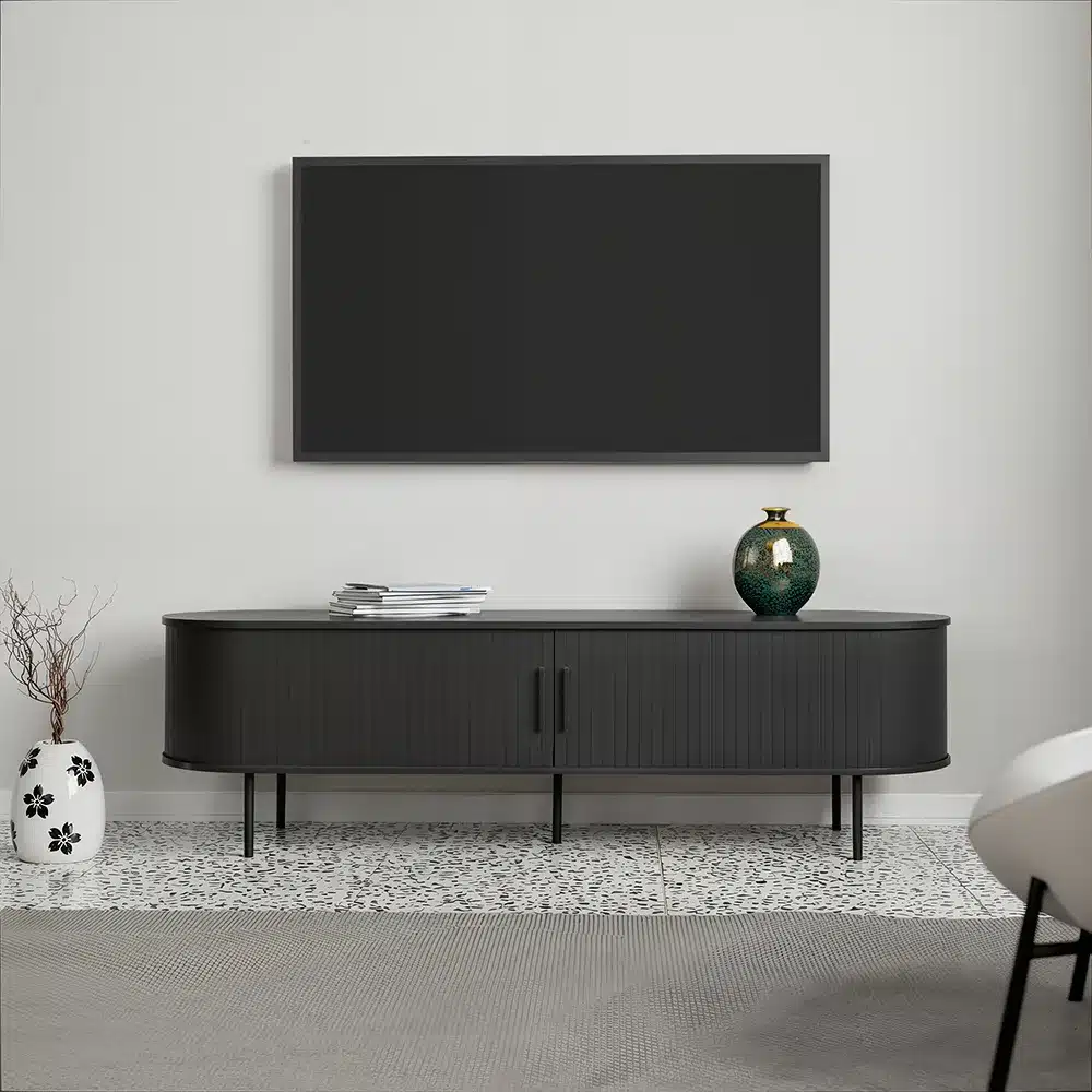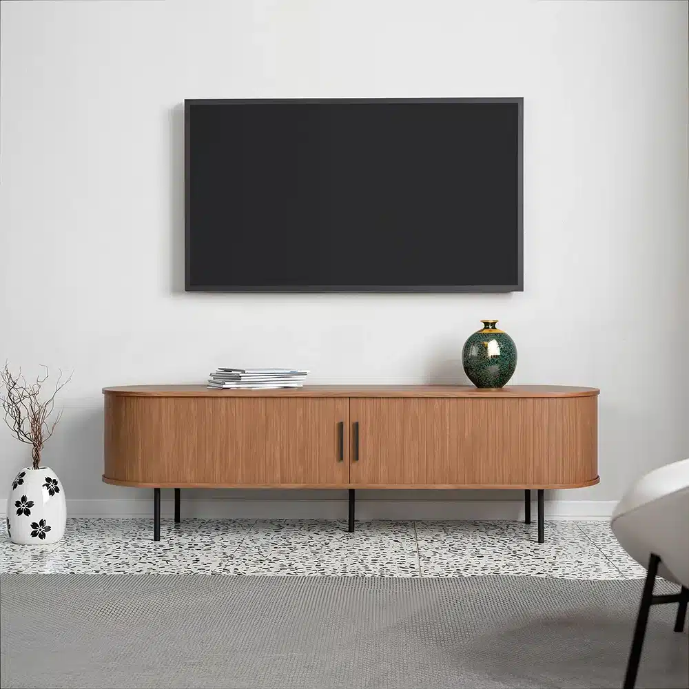מזנון טלוויזיה מעוצב ופונקציונלי, עם שטח אחסון רב