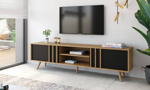 מזנון טלוויזיה לסלון אלון משולב שחור – רוחב 180 ס"מ