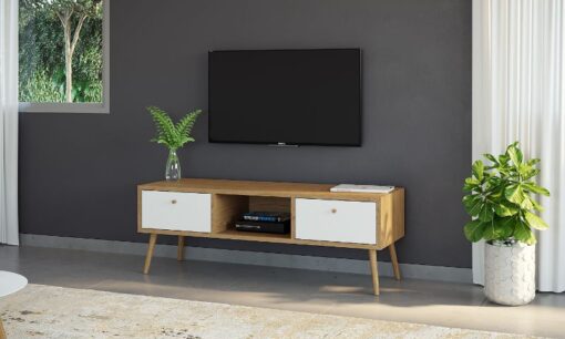 מזנון מעוצב לסלון בגוו עץ אלון משולב עם לבן רוחב 120 ס"מ