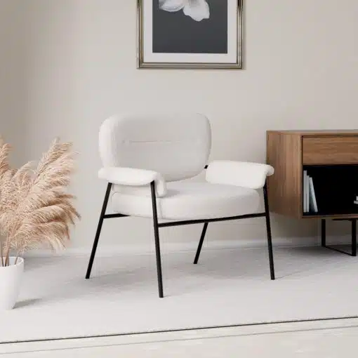 הכסא המרופד עם הידיות מתאים במיוחד לסלון, פינת עבודה, פינת קריאה או כפריט עיצובי משלים בכל חדר בבית. העיצוב המינימליסטי המשלב את רכות הטקסטיל עם קווי המתכת הנקיים יוצר מראה עכשווי ואלגנטי שישתלב בכל סגנון עיצוב.