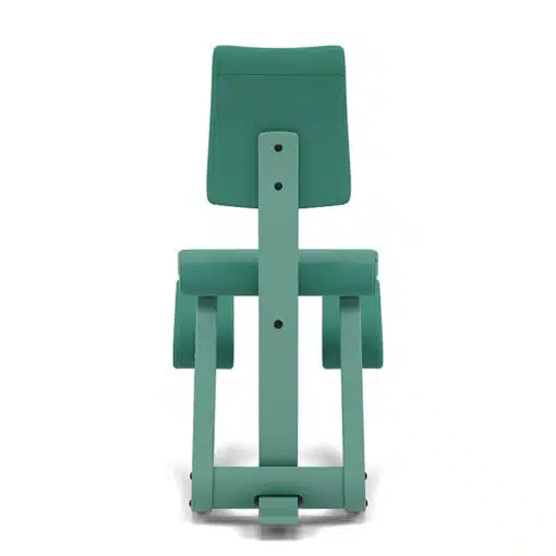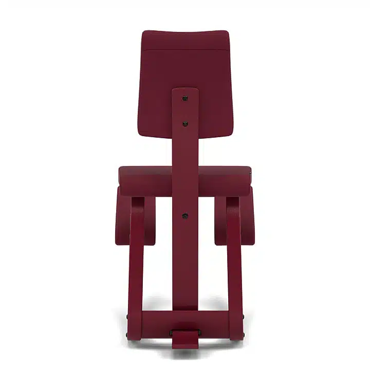 הכסא הארגונומי מעודד ישיבה אקטיבית ודינמית ומאפשר מעבר חלק בין תנוחת כריעה לתנוחות ישיבה מסורתיות יותר. רגלי העץ המקומרות מאפשרות תנועות נדנוד עדינות, בעוד המושב הנטוי יוצר זווית ירכיים פתוחה. שתי הכריות מתחת למושב מספקות תמיכה גמישה – ניתן לנוח עליהן עם שתי השוקיים, רגל אחת, או להניח את הרגליים על הרצפה.