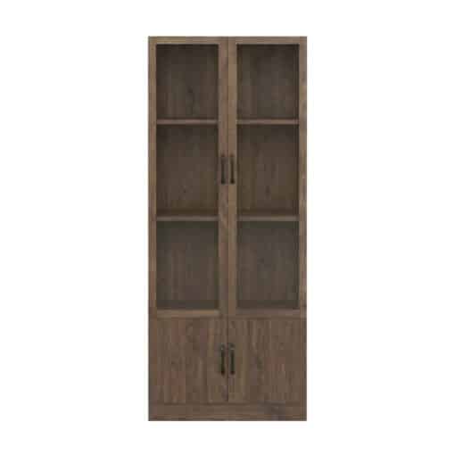 עיצוב דו-שכבתי: חלק עליון עם דלתות זכוכית שקופות להצגת פריטים נבחרים, וחלק תחתון עם דלתות סגורות לאחסון נסתר ומסודר.