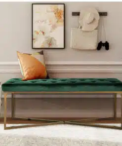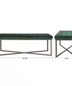 ספסל המתנה ללובי או לבית בבד קטיפה איכותי דוחה כתמים , הספסל מרופד היטב בספוג איכותי ועמיד , מסגרת הספסל עשויה ממתכת אל חלד בצביעה אלקטרוסטטית בצבע זהב.