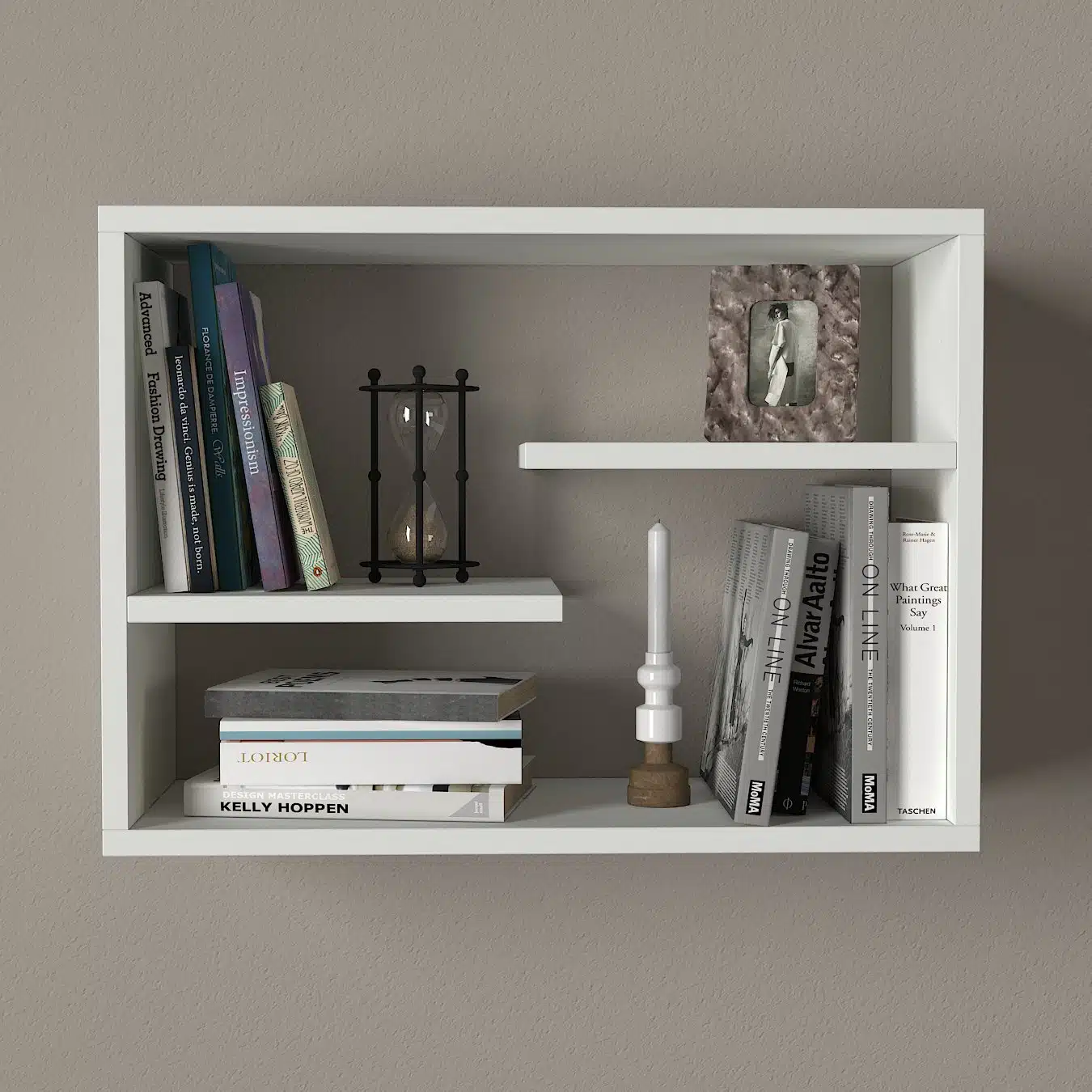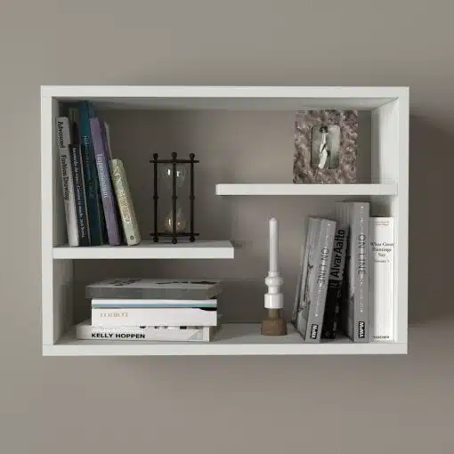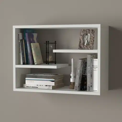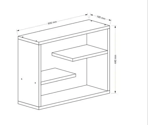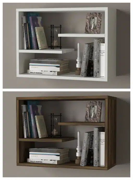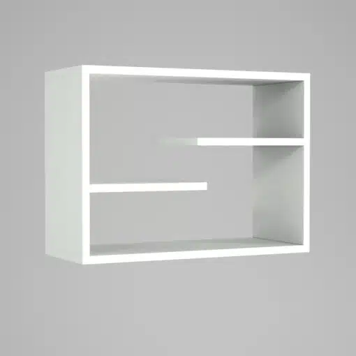 מדף מעוצב לתלייה עם שני מדפים לאחסון מתאים לבית או למשרד . עשוי משבבית דחוסה בעובי 18 מ"מ עם חיפוי מלמין איכותי.
