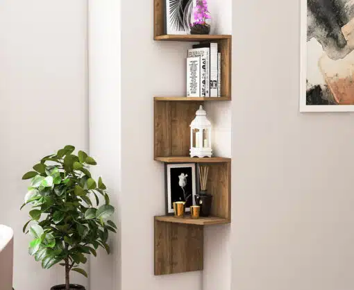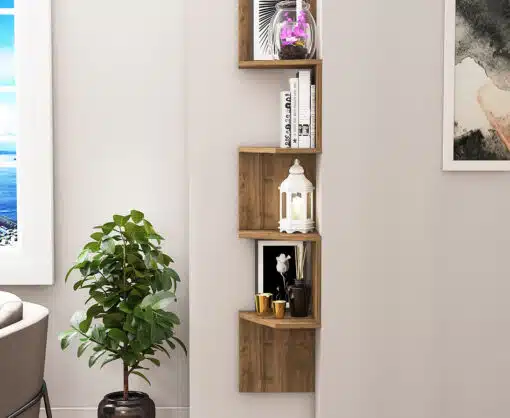 מדף פינתי מעוצב לסלון – פתרון אחסון ואסתטיקה