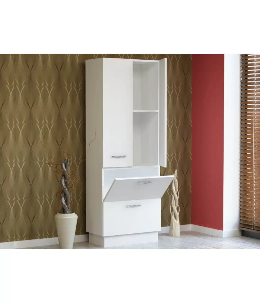 ארון מדפים רוחב 60 ס"מ עם שטח אחסון רב. הארון עשוי מעץ מתועש עם חיפוי מלמין יצוק בצבע לבן.