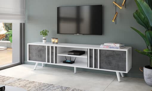 מזנון לסלון רוחב 180 ס"מ לבן משולב בטון