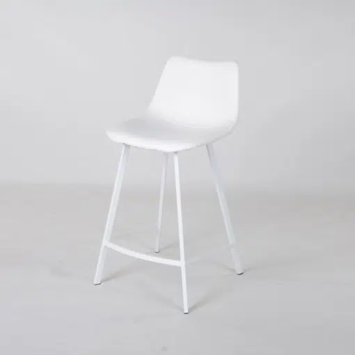 כסאות בר לבנים דמוי בעיצוב יוקרתי וקוים נקיים. הכסאות מרופדים היטב בדמוי עור איכותי עמיד וקל לניקוי וספוג בצפיפות גובה , מסגרות הכסאות עשויה ממתכת אל חלד בצביעה אלקטרוסטטית איכותית בצבע לבן .