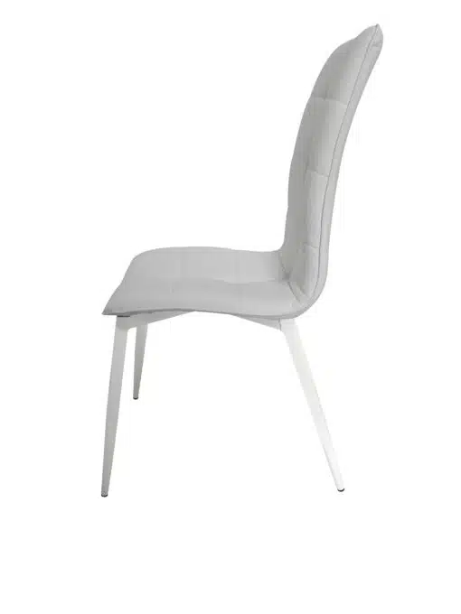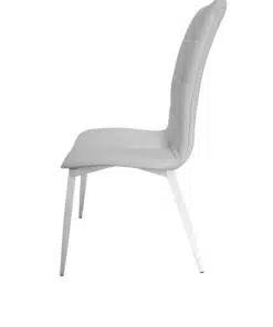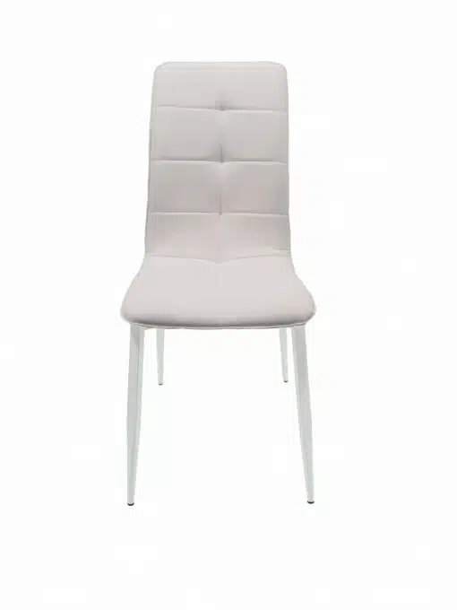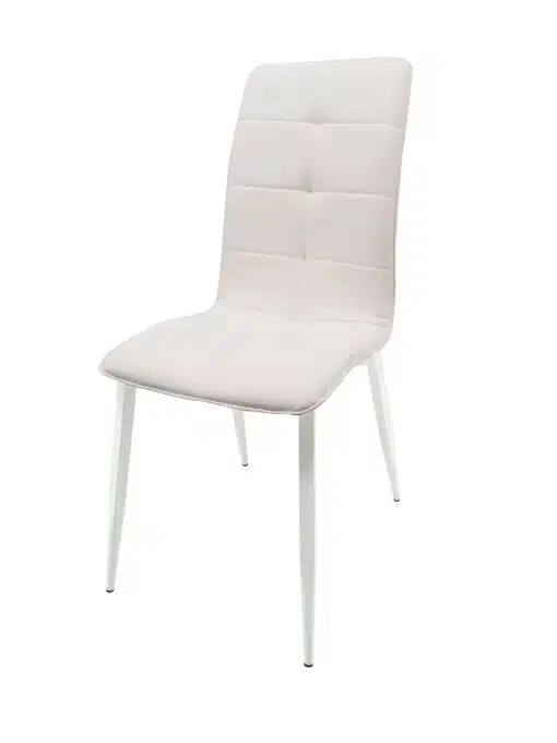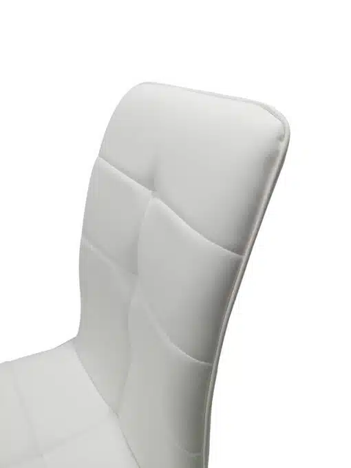 כסאות לפינת אוכל דמוי עור לבן מרופדים בספוג בצפיפות גבוה המבטיח עמידות לאורך זמן, מסגרת הכסאות עשויה ממתכת אל חלד בצבע לבן.