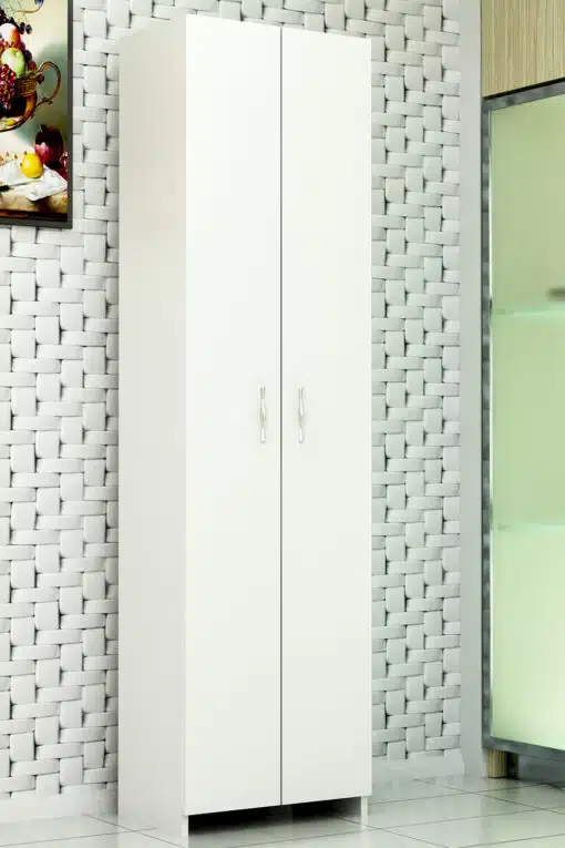 ארון מדפים גבוה עם דלתות – פתרון אחסון מקסימלי בצבע לבן