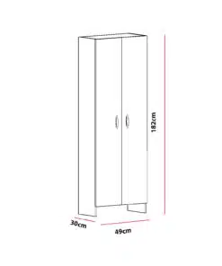 ארון אחסון גבוה המשלב עיצוב קלאסי נקי עם פונקציונליות מתקדמת. הארון כולל 7 מדפי אחסון מרווחים מאחורי 2 דלתות מגנות, ומעוצב להבטיח אחסון מקסימלי בשטח מינימלי. הפתרון האידיאלי למטבח, מחסן, משרד או כל חלל הזקוק לאחסון רב תכליתי מסודר ומוגן.