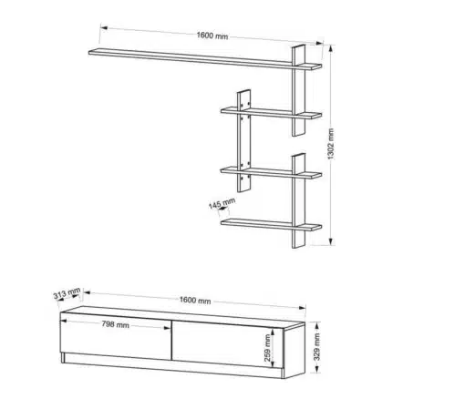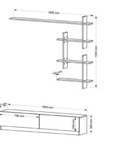 - מידות מושלמות: רוחב 160 ס"מ מאפשר לך להציב טלוויזיה בגודל בינוני עד גדול, והעומק מאפשר גישה נוחה לכל החפצים המאוחסנים.