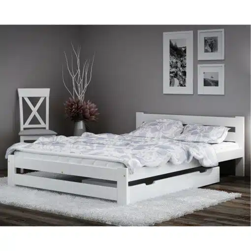 מיטה זוגית קלאסית מעץ לבן עם ארגז מצעים