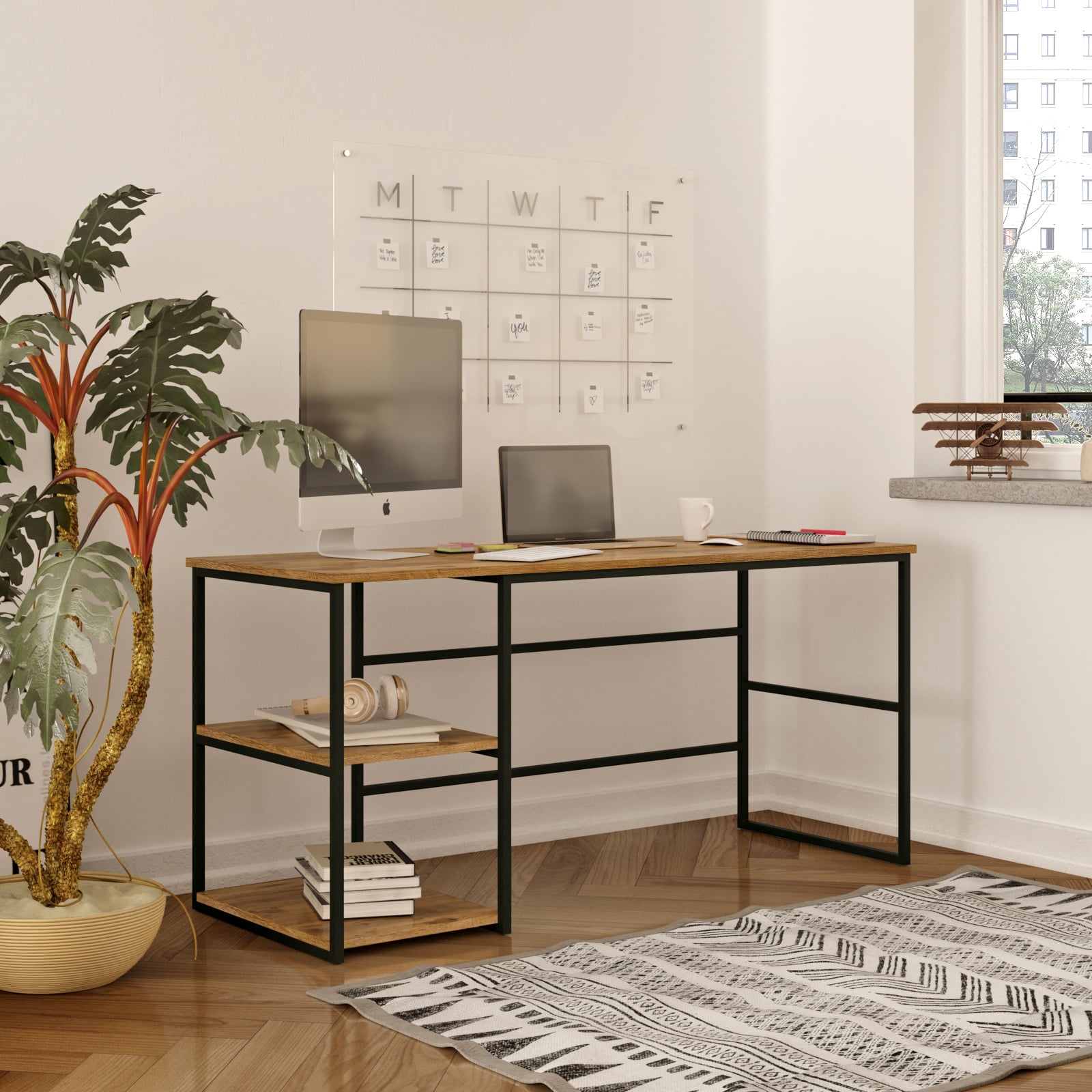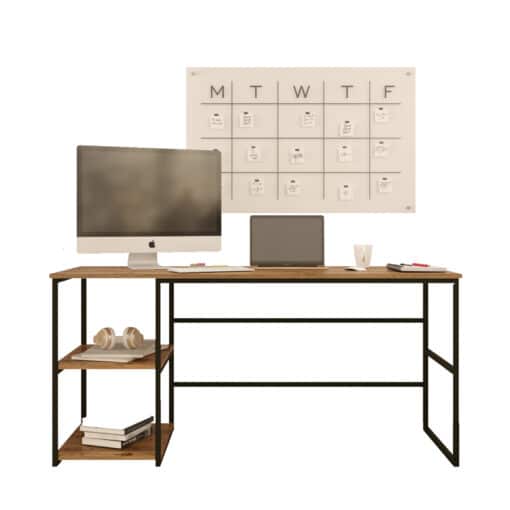 שולחן כתיבה מעץ עם מדפים רוחב 140 ס"מ, עשוי מעץ מתועש עם חיפוי מלמין ומסגרת מתכת אל חלד חזקה ויציבה .