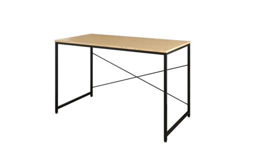 שולחן כתיבה בגוון עץ אלון משולב עם מסגרת מתכת אל חלד בצבע שחור , פלטת השולחן עשויה מעץ מתועש עם חיפוי מלמין יצוק.