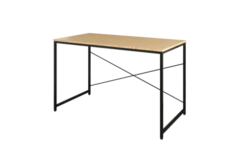 שולחן כתיבה בגוון עץ אלון משולב עם מסגרת מתכת אל חלד בצבע שחור , פלטת השולחן עשויה מעץ מתועש עם חיפוי מלמין יצוק.