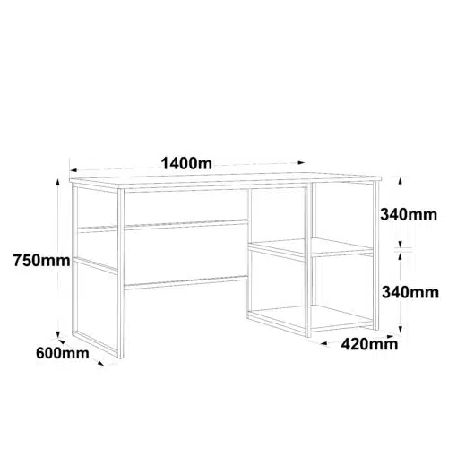 שולחן כתיבה עם מדפים מעץ ומתכת
