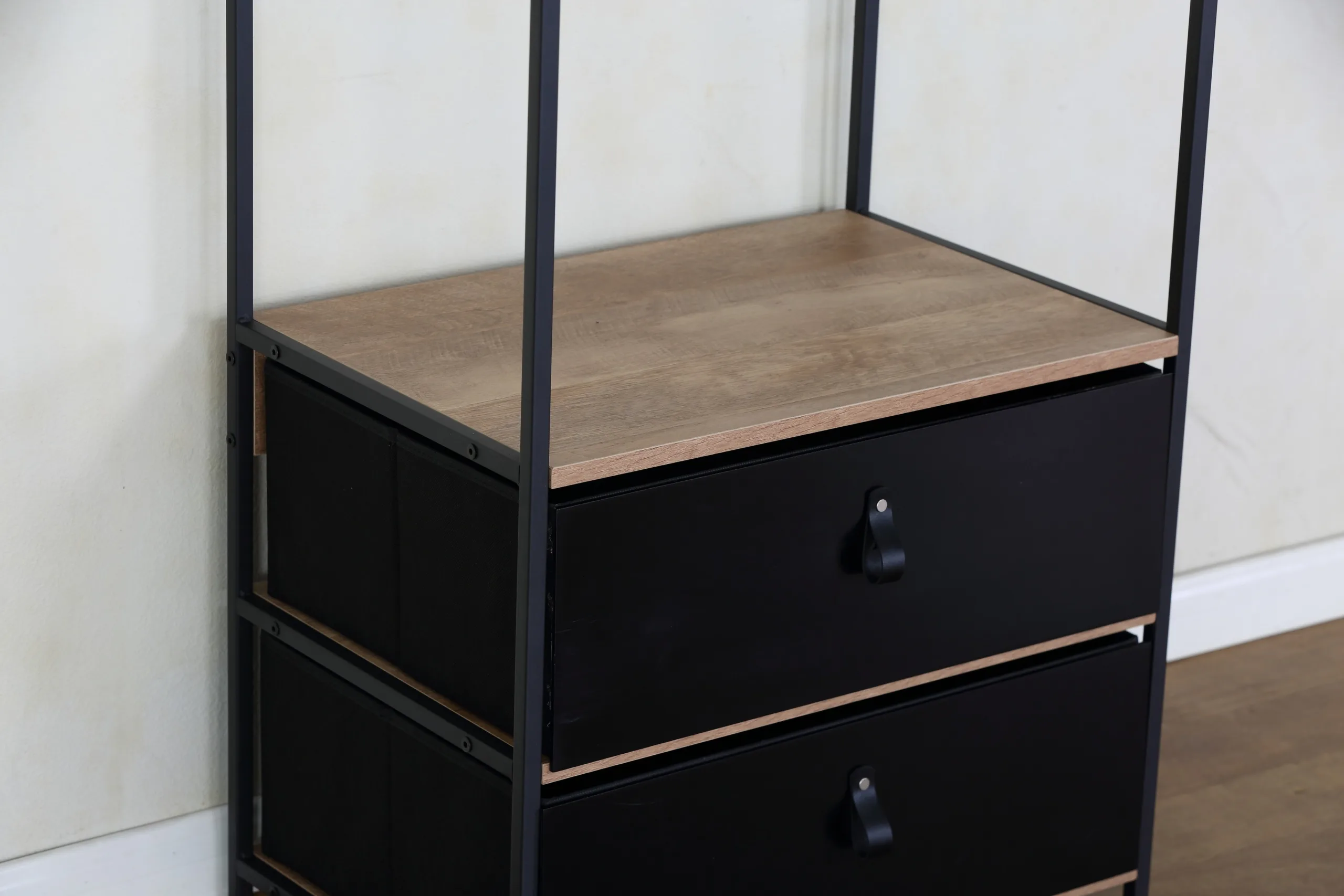 יחידת אחסון מודולרית עם מגירות – פתרון חכם עם 2 מגירות ומוט תליה