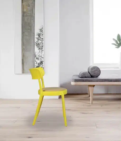 כסא צהוב פלסטיק לפינת אוכל או לגינה
