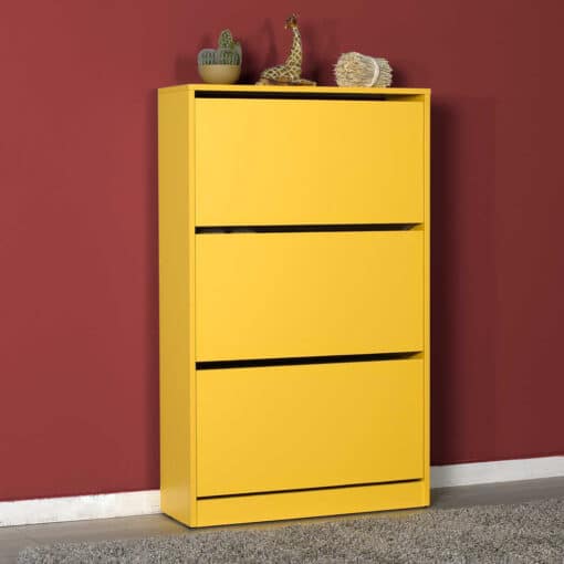 ארונית פרקטית וצבעונית עם 3 תאי אחסון כפולים, מושלמת לארגון כל זוגות הנעליים שלך. הארונית עשויה מעץ מתועש עם חיפוי מלמין יצוק בצבע צהוב בוהק שיעניק אנרגיה חיובית לכל חלל.