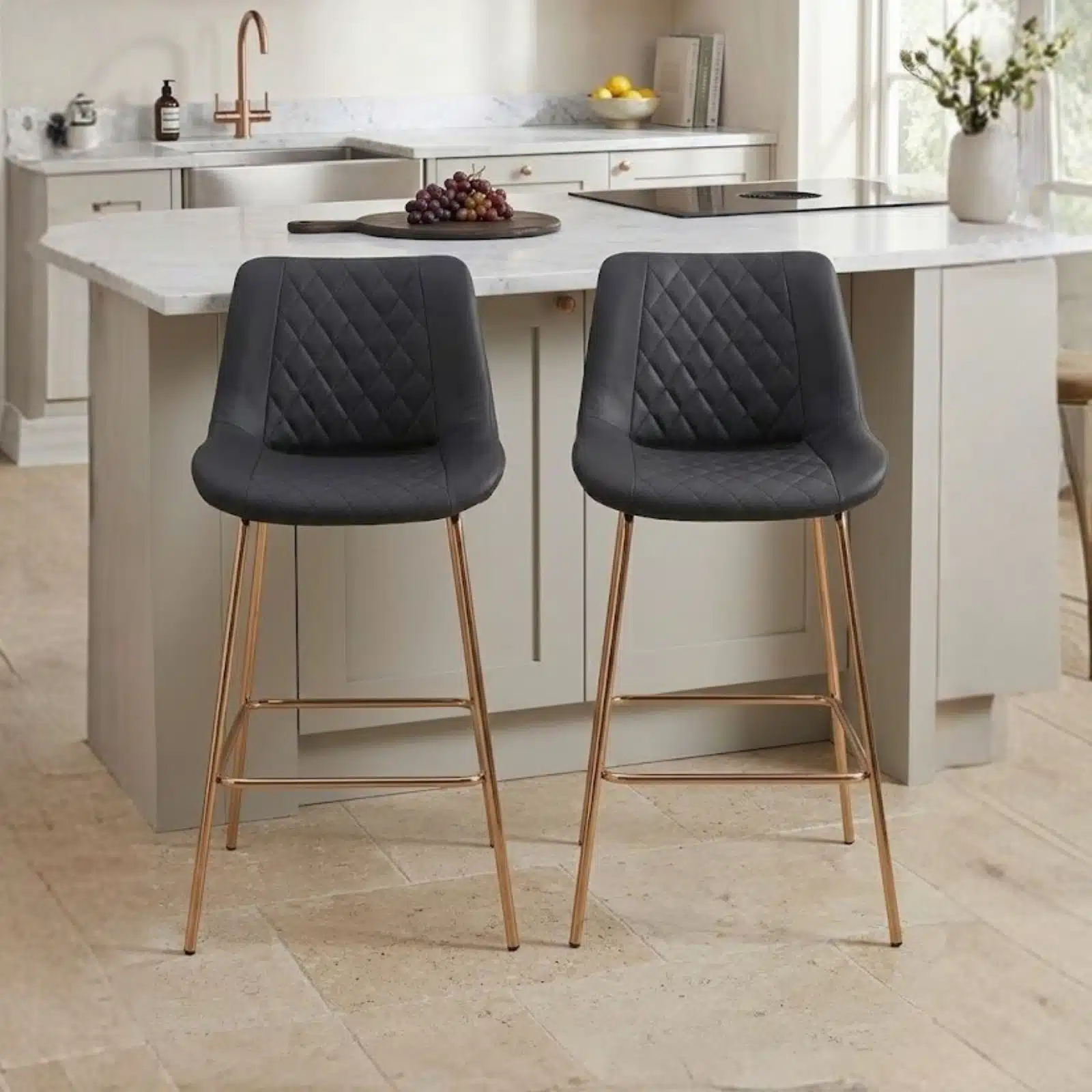 זוג כיסאות בר ליסבון גולד משלבים נוחות ישיבה גבוהה עם מראה אלגנטי ומודרני. הכיסאות מתאימים למטבחים, איי מטבח ופינות בר ומספקים נוחות גם בישיבה ממושכת.